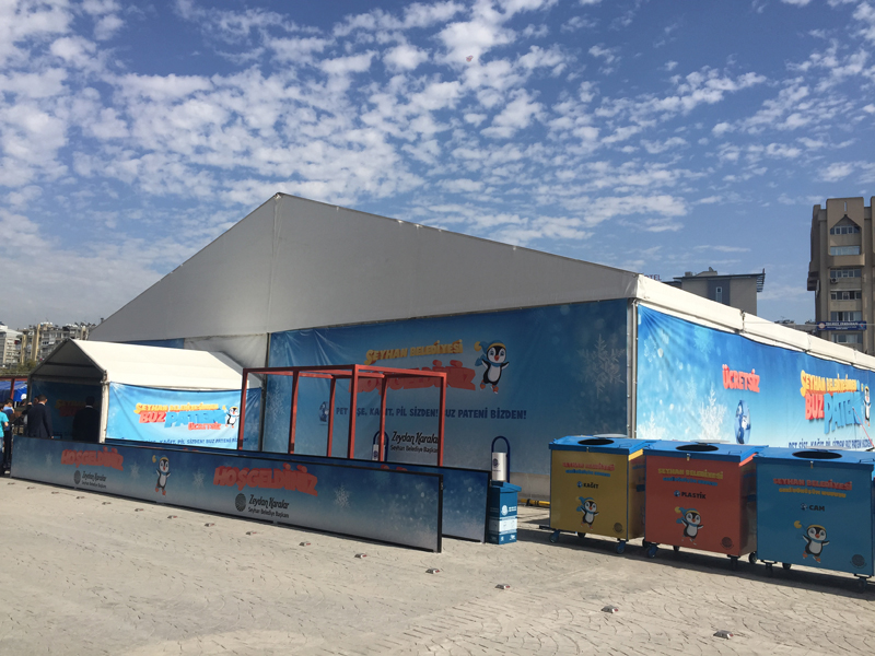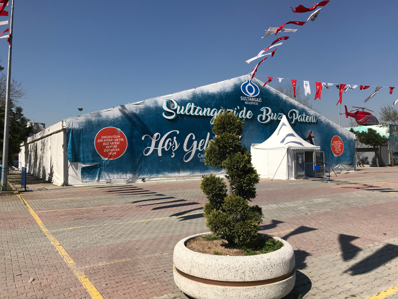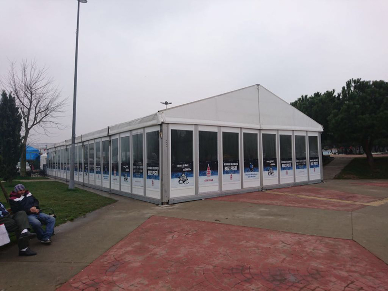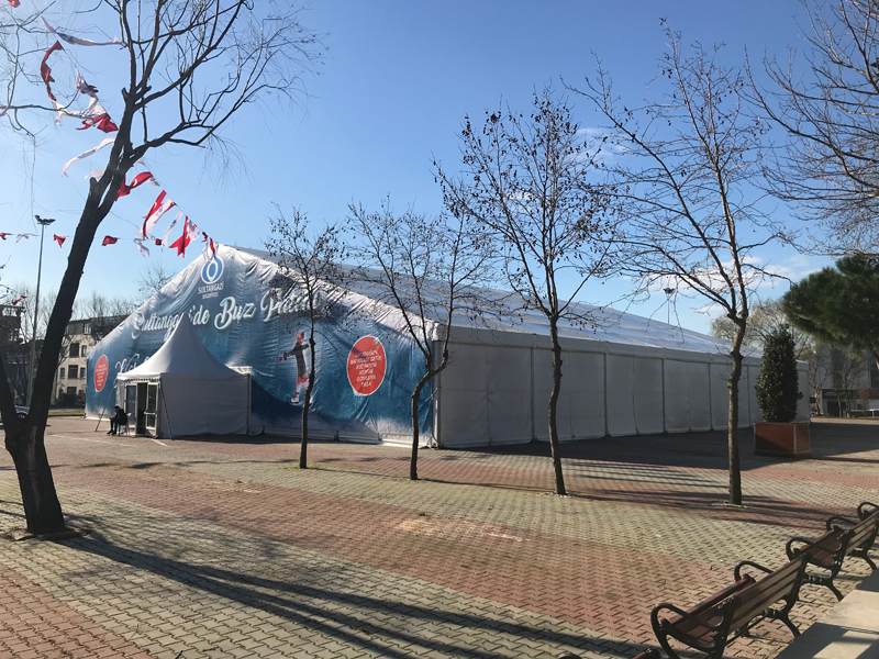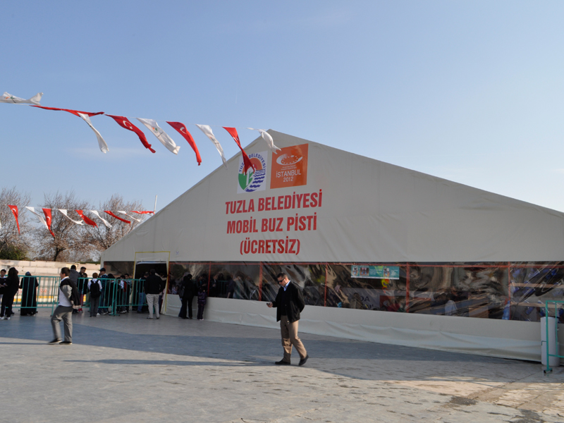 Birçok ebadi olan çadirlarimiz istenilen ebat da kurulabilmektedir. Bu ebatlar 5 ve 5 in katlari seklindedir. Buz pisti ebadina göre, karari verilen çadirlarimiz isi geçirmez ve üstü kar tutmaz malzemeden yapilmaktadir.. Fuaye ve yürüyüs platformu da aplike edilebilen bu ürünümüzün kurulum süresi 1 gündür. Çadirlarimiz yeterli miktarda ve A sinifi(tasarruflu) enerji harcayabilen isiklandirma aparatlari ile aydinlatilabilmektedir. Degisik formalari olan bu çadirlarimiz sisme olabildigi gibi hafif alüminyum(ramazan çadiri vb.) çadirda olabilmektedir.